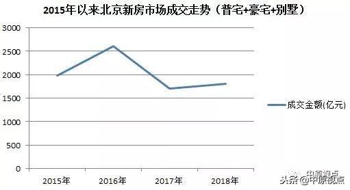 根据北京中原的统计数据,2018年北京新房市场(不含回迁房,剔除自住房和保障房,含普通住宅、豪宅、别墅)各区总成交额1813.87亿元,环比2017年上涨6%,但不敌2015年和2016年。成交面积337.86万平方米,总成交23836套房,环比增加2470套,成交均价53687元/平方米,环比2017年价格上涨3500元/平米房。套均价761万元/套,环比2017年下跌19万元/套。