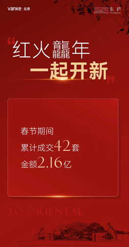 新政出台后,恰逢春节小长假,在多数人回乡过节的情况下,位于通州区与朝阳区交界处的万科东庐也再次人气狂飙,每日营销中心来访客户络绎不绝。万科东庐作为近几年来少又的北京市场热销TOP级项目,开盘至1月底已累计网签10.26亿,此次新政后更是红上加红,短短11天时间,到访突破400组,成交42套,金额2.2亿,如此热度让人难以置信。