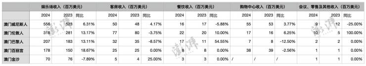 购物中心收入方面,澳门威尼斯人和澳门伦敦人分别同比增长3.77%和6.25%;澳门巴黎人则录得12.5%的降幅,购物中心仅录得700万美元。