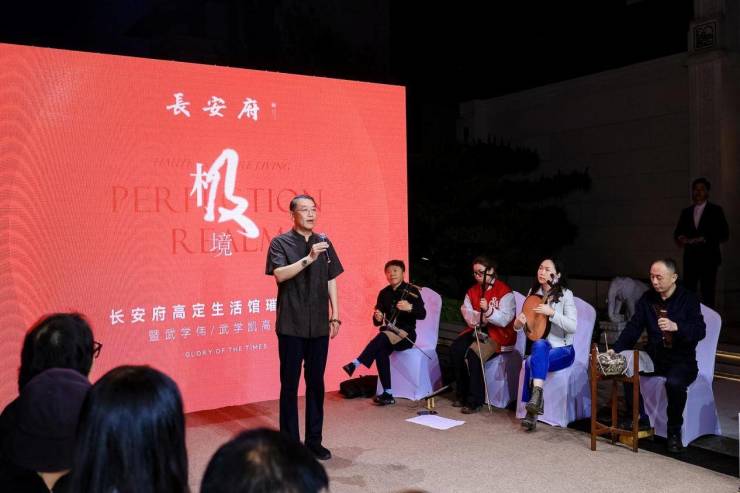 淳一、李钊、索明芳和刘亚新四位京剧名家轮流登台献唱,或细腻婉转、或荡气回肠的唱腔为现场嘉宾呈现一场国粹艺术盛宴。随后,李迅会长、武学伟、武学凯两位设计师以及谢方明主席,以沙龙形式对高定生活展开更为深度、更为广泛的交流与探讨。时尚界的高定离不开精雕细琢,亦如地产界的高定离不开匠心打造。长安府深谙层峯人士的居住追求,将东方文化与现代技艺完美融合,以独栋的私密境界,让圈层人物在这里遇见自己的理想栖息。
