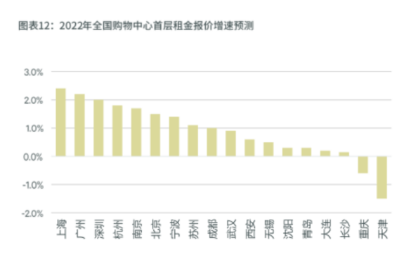 租金上,2022年全国购物中心的新增供应量预计与2021年基本持平,总量约900万平方米。其中近九成位于非核心商圈,但有近六成的项目由经验开发商管理运营。由此预计,全国购物中心整体空置率有望保持在10%以下,全国平均首层租金指数预计同比增长1%左右。基于品牌更强的拓店意愿,一线城市和华东二线城市的租金有望增长1.5%-2.5%。