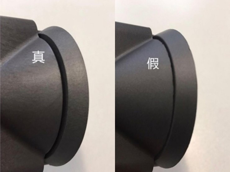 然后是细节。真的戴森吹风机出风口接头部分做工精细,没有缝隙,横截面平整,而且颜色均匀质感优质,而假货的出风口缝隙宽窄不一,横截面附近经常会有一些凸起或是凹陷,边缘不够平整且颜色不够纯正。