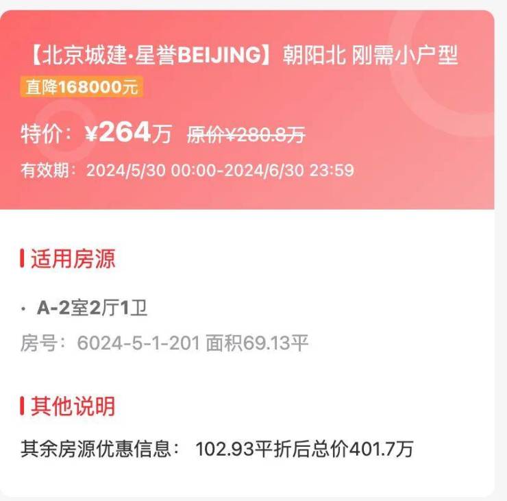 项目位于顺义新城北小营区域,约64平米特价房源,直降11万,折后总价约179万;