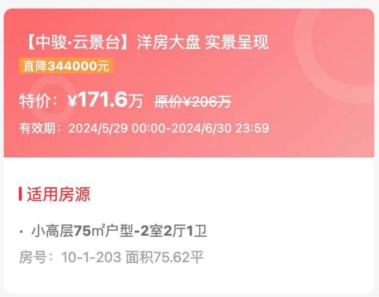 项目位于南六环外1.2公里左右,房山良乡以南。约75平米特价房源,直降34.4万,折后总价约171.6万。