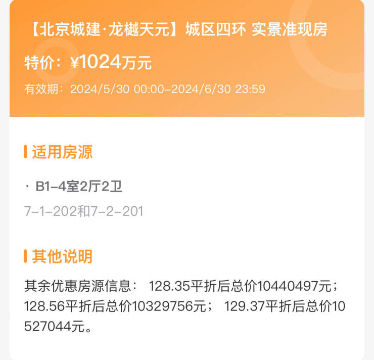 项目位于丰台西四环外,距西四环直线约800米,1.7公里左右是地铁14号线郭庄子站;约127平米特价房源,直降45万,折后总价约1024万。