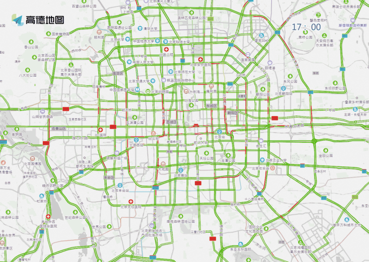 工作日白天时段,预计儿童医院、儿研所、北京医院、西苑医院、复兴医院、北医三院、同仁医院、积水潭医院等医院门前及周边道路车流量较大,高峰时段为7至13时。