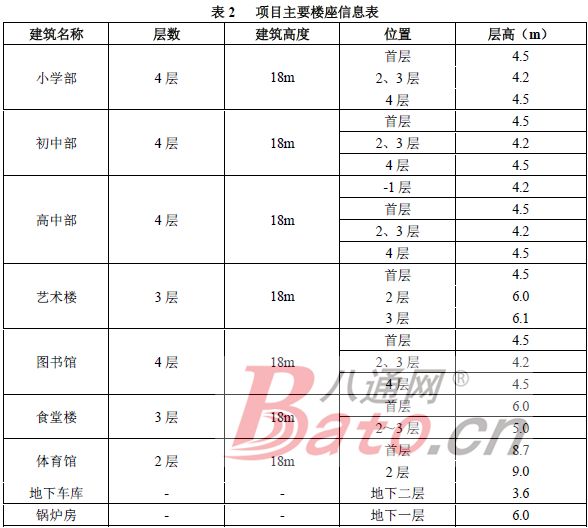 项目区设置小学部、初中部和高中部,分别位于项目区西部、南部和东部,均为四层18米高楼座,其中高中部设置高中宿舍楼;项目占地北部为400米标准运动场,小学部西侧设置一处200米标准运动场;项目占地中部由北向南依次建设体育馆、食堂、图书馆和艺术楼。