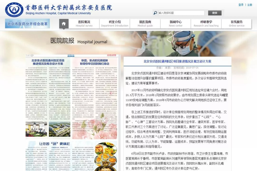 上个月,安贞医院官网发布信息明确了较终选址,同时还报道了安贞医院通州院区的较新进展及概念设计方案。