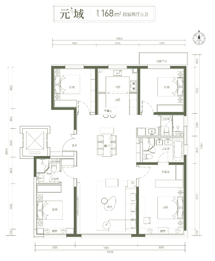 168平分布在小区北侧的2号楼和3号楼,也是洋房产品,只有52套,一梯两户,7-8层,得房率高。