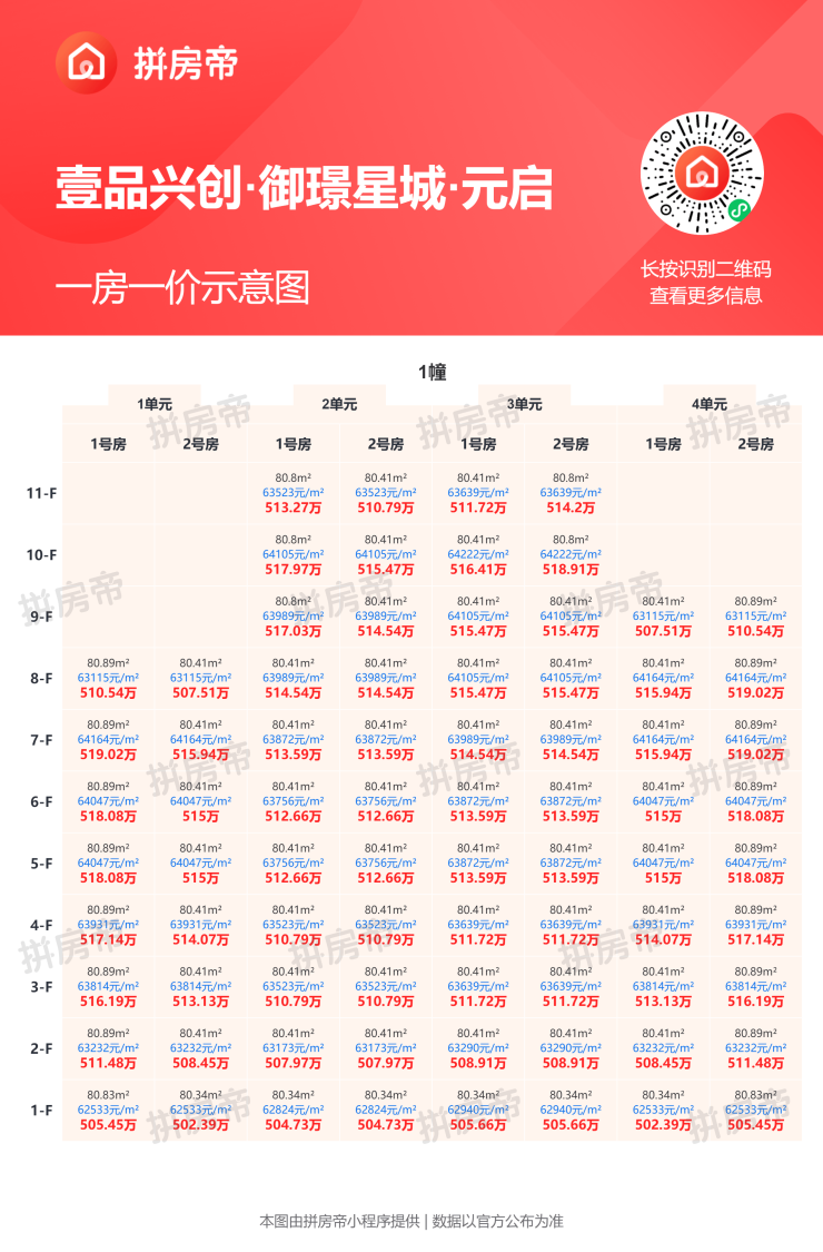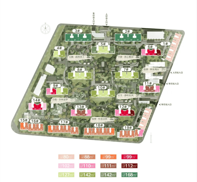 户型面积是80平的东西向、88/99/110平的南北向三居,142/168平的南北四居。