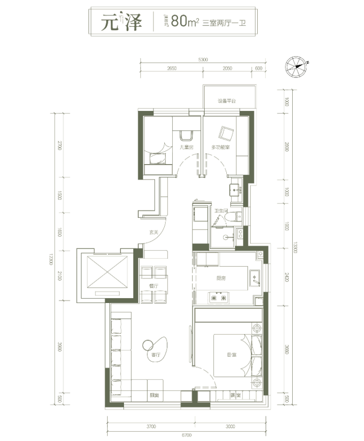 80平三居室,东西偏东南向,共138套房。很刚需,全明格局,主卧入户门放到南侧,保护了隐私。
