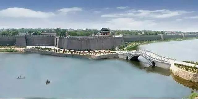 二千六百多年的历史,道不尽他的沧桑。明代时重修的城墙,是这座城较大的壁垒。护城河地势北高南低,水能自流,夕阳将其照耀,波光粼粼。