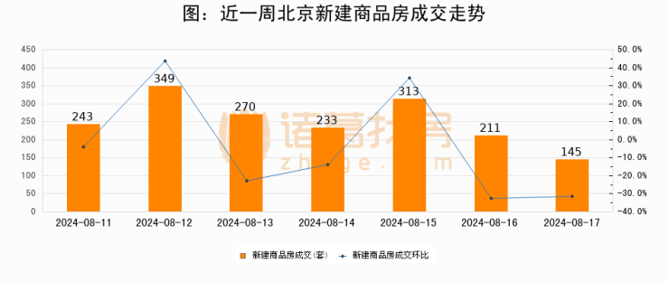【北京成交日报】08月17日新房成交145套、二手房186套;涨价房源176套