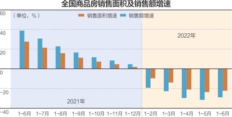 今年前6月商品房销售面积同比下降22.2% 数据来源:国家统计局 杨靖制图