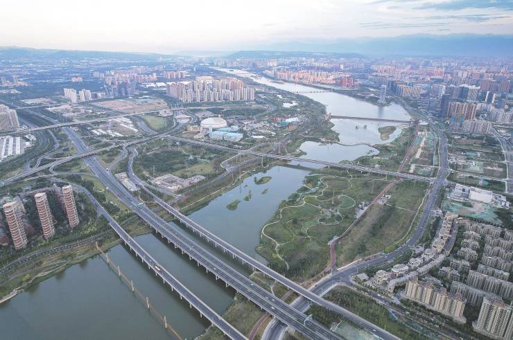 西安市住建局等五部门近日联合出台13项措施,旨在有效防范商品房延期交房增量问题。图为无人机近期拍摄的西安市灞河两岸的高楼 新华社图