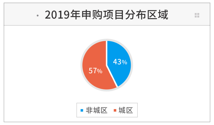 从区域位置看,2018年已申购的项目中位于城区的有7宗,非城区的12宗,城区和非城区项目的比例大概是,0.58:1。