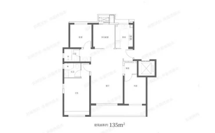 建面约135平三居,南北通透,户型全明,双卫生间干湿分离,北向卧室和多功能室挨着,厨房U型设计。