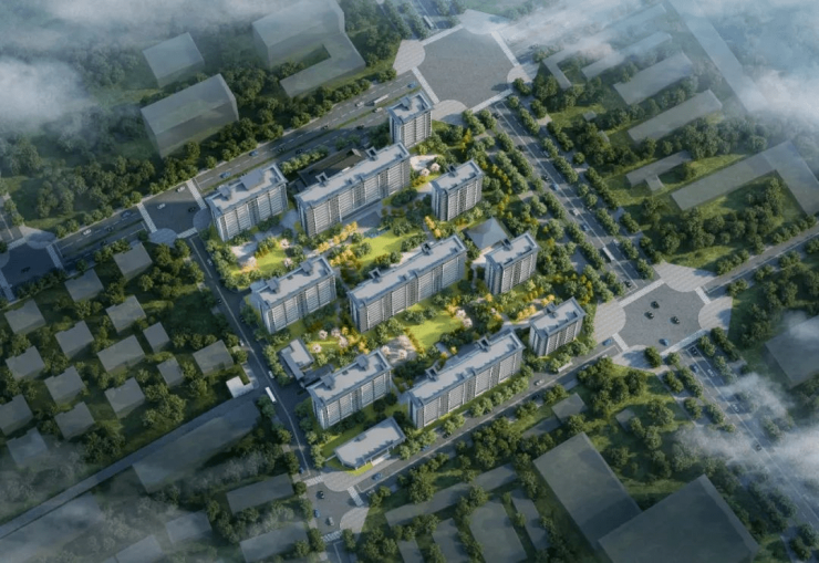 容积率1.8,共10栋住宅楼(9-11层),及4栋其他建筑。