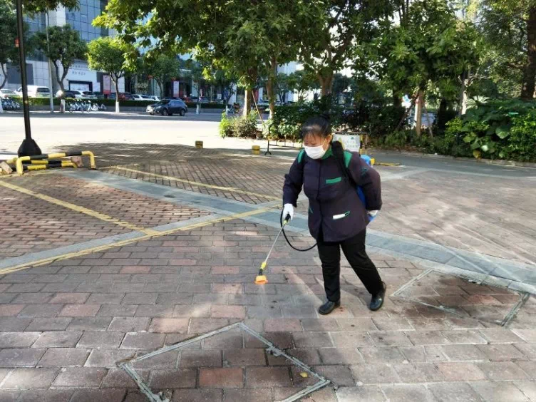王明珍是中山熹玥项目清洁员工。正值春节,项目许多员工一早便陆陆续续地回了老家,王明珍阿姨是清洁部为数不多的留守值班员工。在疫情面前,她勇敢地站了出来承担起公共区域消毒的位置。一桶消毒水有四五十斤重,就算是正值青年的小伙子背着也会累得够呛。可王明珍阿姨却坚定地说道:“放心吧,这些对于我来说没问题”,说完便快速投入到消毒工作中。