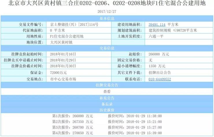 当天较紧俏地块 并没有很高温!北京市大兴区黄村镇三合庄0202-0206、0202-0208地块F1住宅混合公建用地,吸引到4家企业参与竞拍,包括永同昌+招商、中骏、三合兴盛+蓝光地产、金地。较终,永同昌+招商联合体以30.25亿夺大兴黄村镇三合庄地块,较高销售单价不超过58500元/平方米(含全装修费用)。