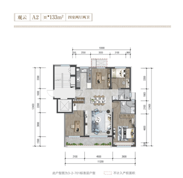 建面约133㎡升级四居,南向整体面宽达到惊人的约11.2米,南向“挑檐”空间更是达到约11㎡,北向设备平台约2㎡,客厅面宽约4.5米,敞阔的客餐厅一体化设计,轻松满足多元家庭需求,而独立收纳功能,主卧套房带飘窗带衣帽空间设计,更是让人眼前一亮,充满期待!