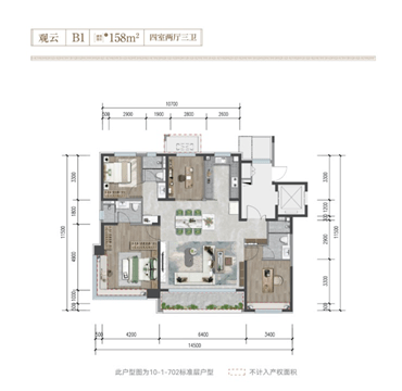 建面158㎡改善[4+1]户型,南向四面宽,整体面宽达到约14.5米,如此产品规制,远超同类改善产品,可以说直追别墅豪宅产品;而独立电梯前室,约6.4米大面宽客厅,敞阔大宽厅设计,社交功能一键拉满;更难得是主卧面宽约4.2米,带270°转角大飘窗,轻松媲美星级酒店套房。