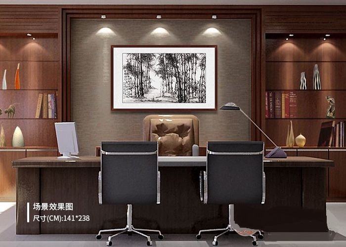 竹子是我国传统名花植物之一,被誉为“岁寒三友”之一,又是“名花四君子”之一,其性情高雅,做人虚心有节,而且竹子生长节节高升,象征着事业发展顺利,步步高升,所以在办公室挂上一幅国画竹字画,是一件非常明智的行为,因此,国画竹子图作品也成为办公室挂画的优选类型。竹子亭亭玉立、节坚心虚,有君子之风,象征挺拔和坚强不屈,竹心空虚,所以象征着谦虚的美德。国画竹子寓意升高,节节高,竹又与祝谐音,有美好祝福的习俗意蕴。将竹子画悬挂在办公室墙上,是带来好运势、事业高升的象征。