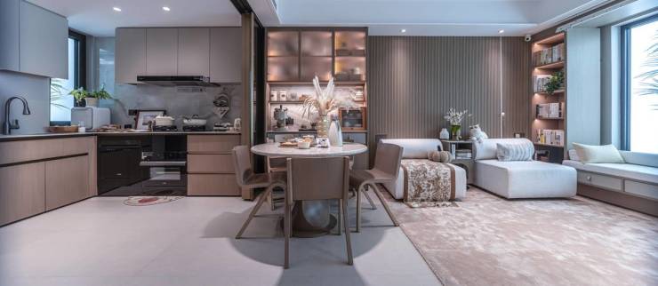 相较于市场标准的精装,M1.0满装提供了更丰盛、完备的家电。挥手感应烟机、防干烧猛火灶、50L蒸烤一体箱、嵌入式洗碗机、燃气热水器、纯平嵌入式冰箱、洗烘一体机,甚至配备了智能扫拖机器人、全智能马桶等市场少有的设备,业主入住后无需再添置任何家用电器。