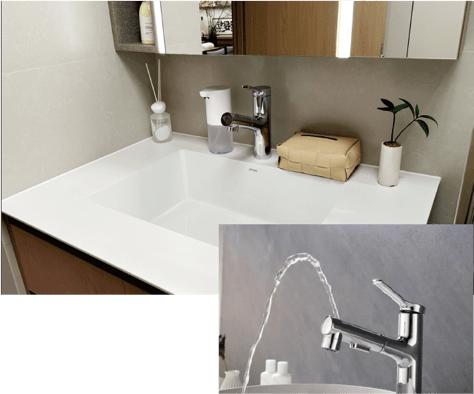 在全屋全屋人性化细节上,万科东庐更是预见业主生活场景,做到无微不至的考量。全屋美缝、无缝台盆、懒人龙头、恒温花洒、TypeA+C快充面板、鞋物护理机等常常被忽略的细节,都是M1.0重点考究的事项,在M1.0看来,一个个细节里,藏着品质生活的秘密。