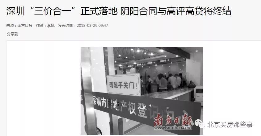 昨天很多媒体都在传一件事,“深圳推行三价合一,阴阳合同和高评高贷将终结”(如图1)。