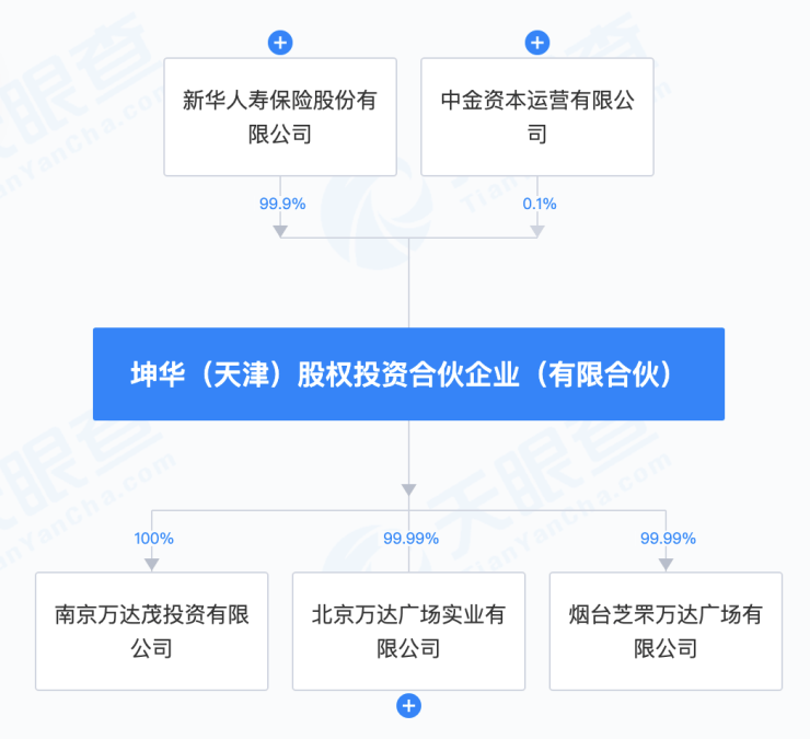 从持股情况来看,除了南京万达茂投资有限公司,新华人寿还持有北京万达广场实业有限公司和烟台芝罘万达广场有限公司。