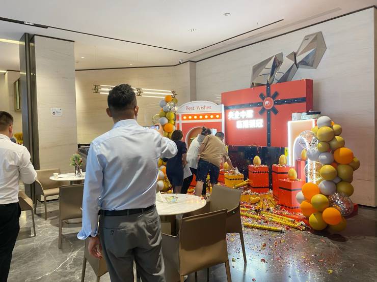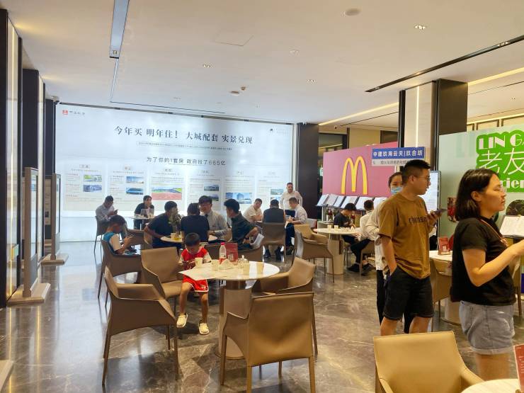 9月2日晚间,澎湃新闻走访位于上海临港的中建玖海云天项目,虽然已至晚上8点,但售楼处依然人来人往。
