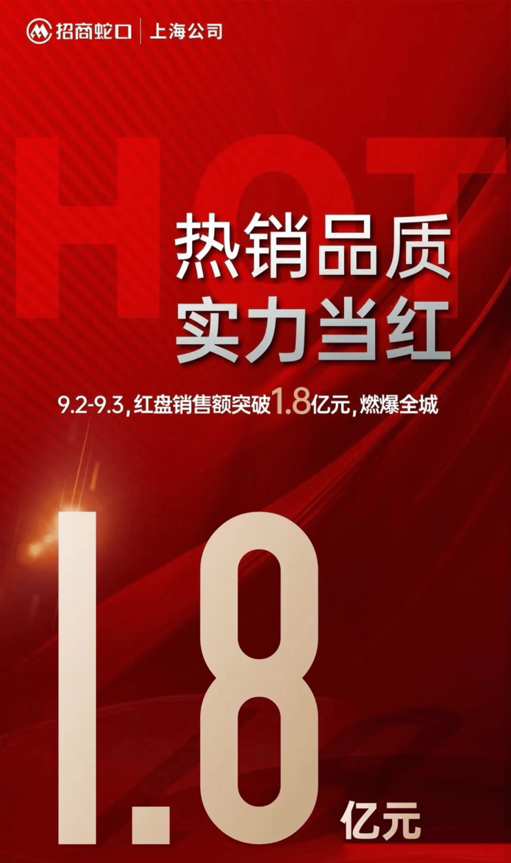 另一家央企招商蛇口上海公司则宣布,在9月2日-9月3日,公司在上海的成交额突破1.8亿元。
