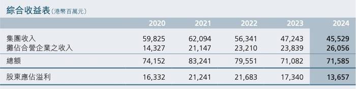 2024年全年,长实集团实现营收455.29亿港元,同比减少3.63%;归母净利润约136.57亿港元,同比减少21.24%。