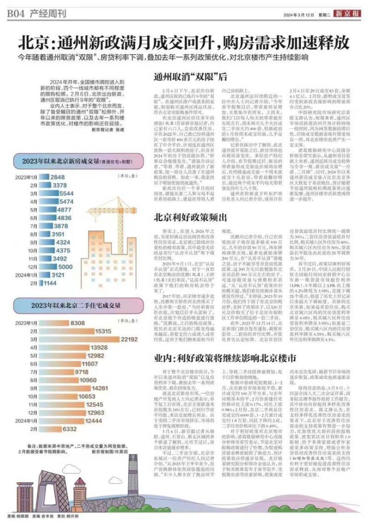 今年随着通州取消“双限”、房贷利率下调,叠加去年一系列政策优化,对北京楼市产生持续影响。