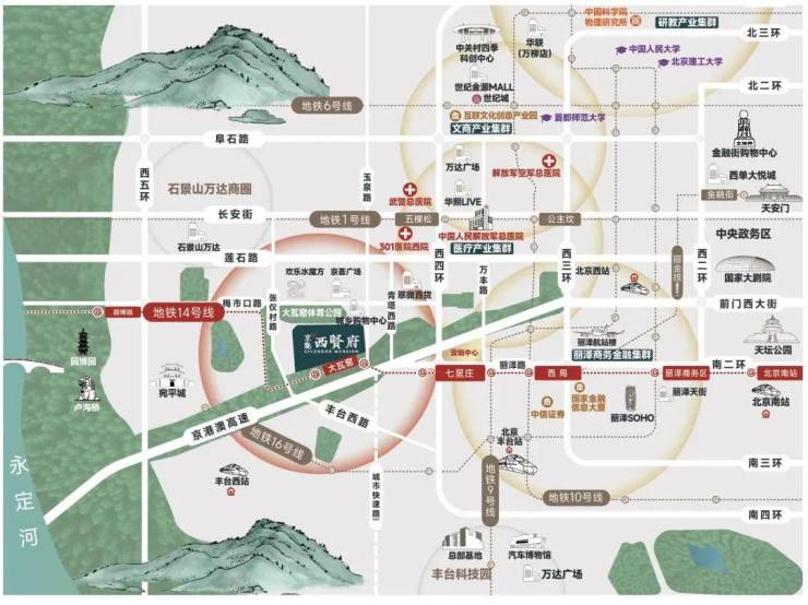 京能西贤府位于西四至五环间,家门口即是地铁14号线大瓦窑站。