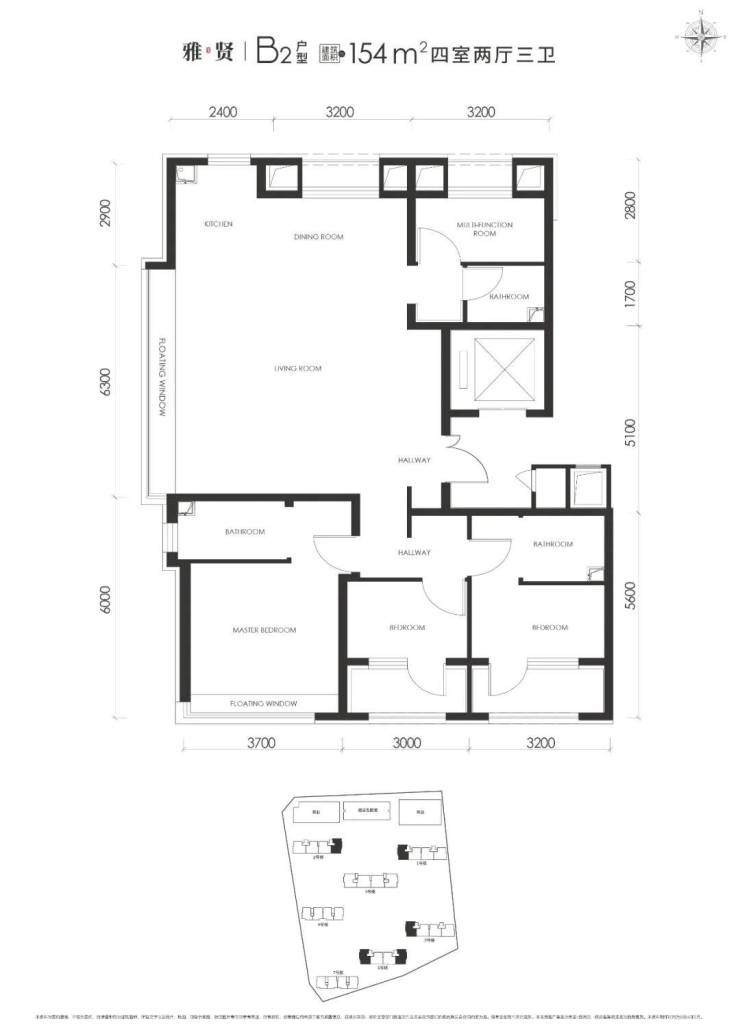 建面约154平米四居B2户型,三卧朝南、南向双套房设计、书房/多功能房置于北侧;约55㎡超大LDK方厅、约6.3m超大开窗;一梯一户,多口之家的升级之选。