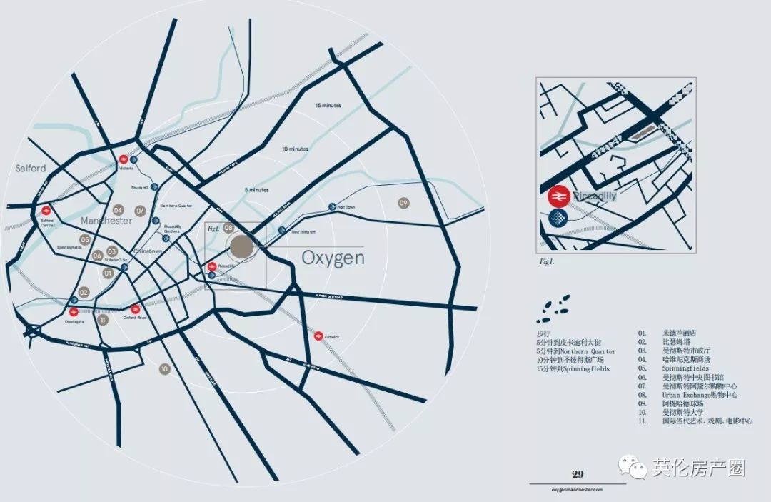 从我们普多码头项目大楼,楼下就是Deansgate火车站,一站到Oxford火车站,用不了三分钟时间,抵达曼城Piccadilly火车站只需5分钟