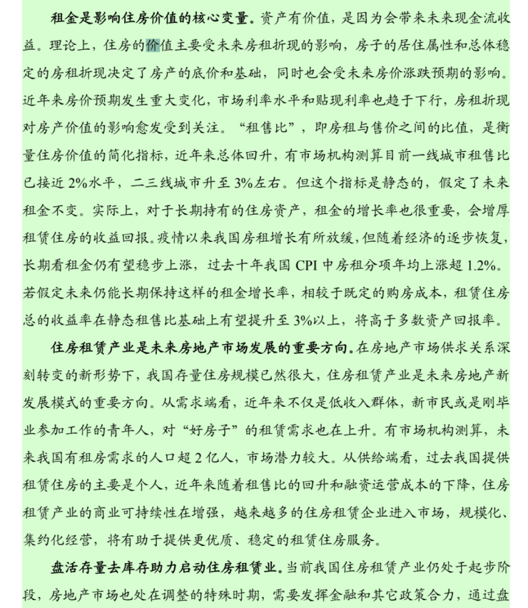 如此关注楼市,本身就非常罕见。而且,这次报告还专门设立了“专栏3”,分析未来住房的租赁投资价值。