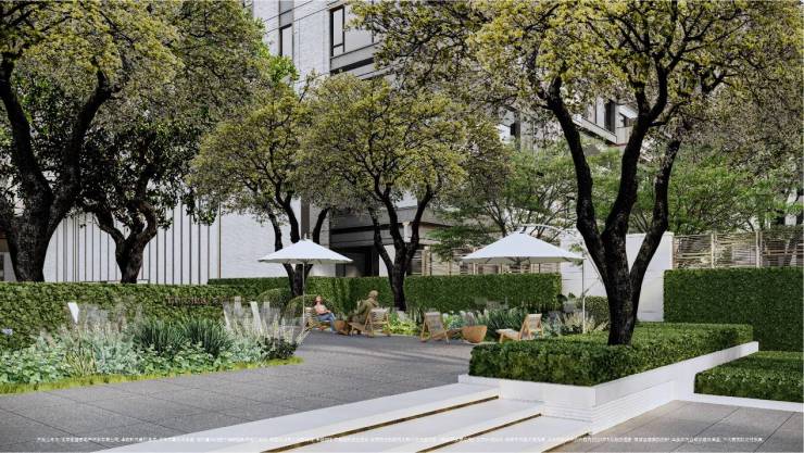 一如安缦的精神内涵「宁静的世界」表达。归家的第一步龙湖·观萃超尺度沉浸式心灵缓冲带——约13000㎡双街角公园,为城心繁华注入一抹宁静、奢谧的绿。