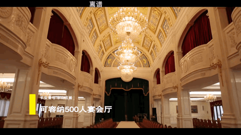 进入到这个会所内部,非常震撼的是,布置了一个可容纳500人的宴会厅,楼上设置了包厢,天鹅绒布置的欧式舞台适合来一场西式婚礼。