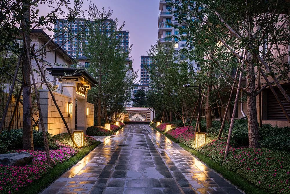 每一户独门独院式的入户,院墙全石材干挂,打造私家院落高墙围合,营造三环内城深宅大院居住体验。