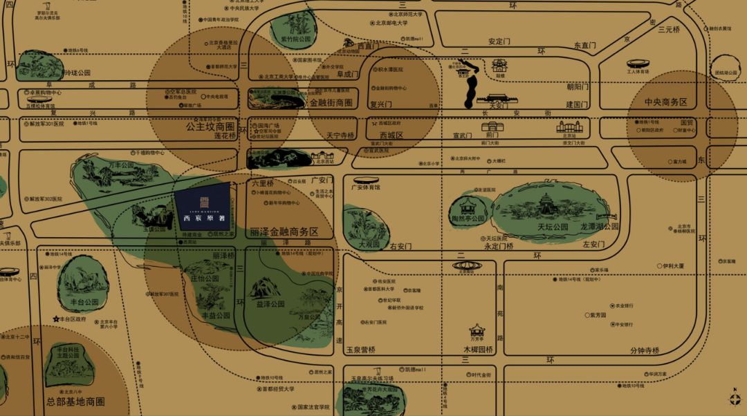 商业配套:丽泽、金融街、公主坟商圈、居然之家、卓展商圈,SKP、丽思卡尔顿酒店、香格里拉、东方威尼斯酒店、国家大剧院、中国会、万事达中心。