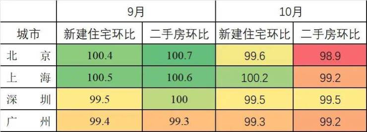 而北京也从9月份的一枝独秀,转为10月份的全线下跌: