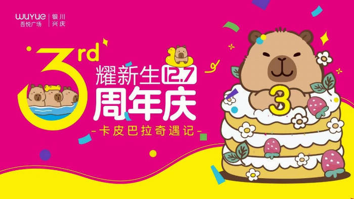 近日,新城控股集团银川兴庆吾悦广场宣布将于12月7日举办盛大的三周年庆典活动,主题为“卡皮巴拉奇遇记”。此次庆典活动不仅将为市民带来一场视觉与心灵的双重盛宴,更将通过一系列精彩纷呈的娱乐项目,让市民们充分感受到商场的温馨与欢乐。
