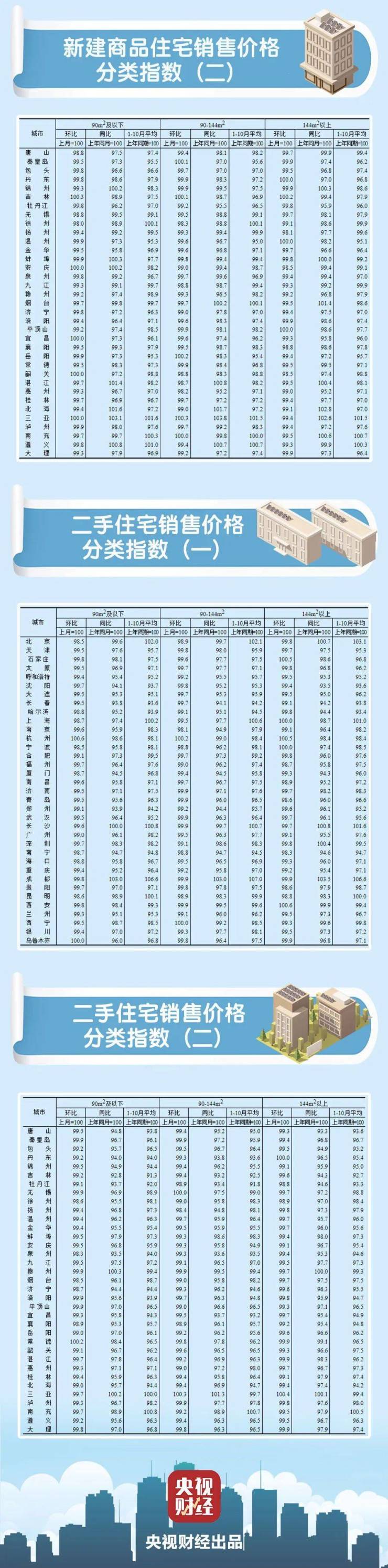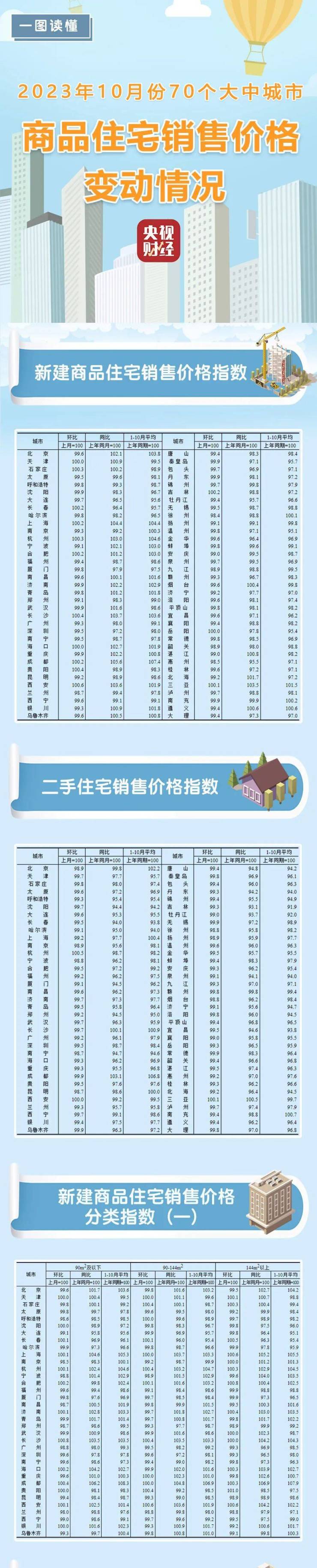 11月16日,国家统计局发布2023年10月份70个大中城市商品住宅销售价格变动情况。
