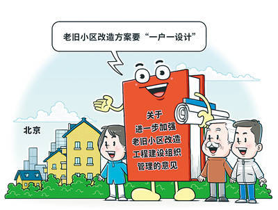 今年3月,北京市住房城乡建设委等五部门出台《关于进一步加强老旧小区改造工程建设组织管理的意见》,提出38条措施加强老旧小区改造组织管理。其中规定,老旧小区改造前应开展入户调查,回应合理个性化需求,做到“一户一设计”。