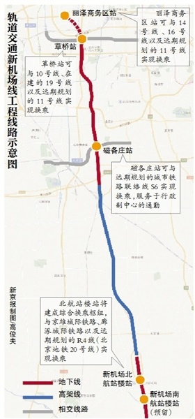 昨日,北京市轨道公司新机场线指挥部办公室副主任唐汐向记者证实,根据较新规划,新机场线北延工程预计将于年底前启动,由草桥站延长至丽泽商务区。