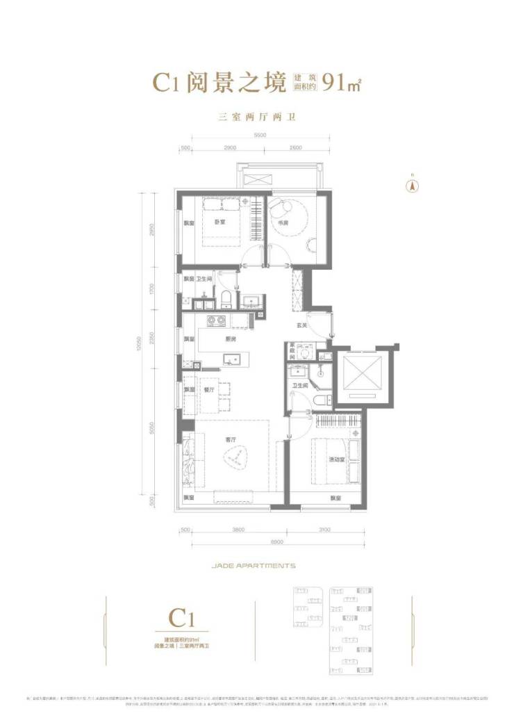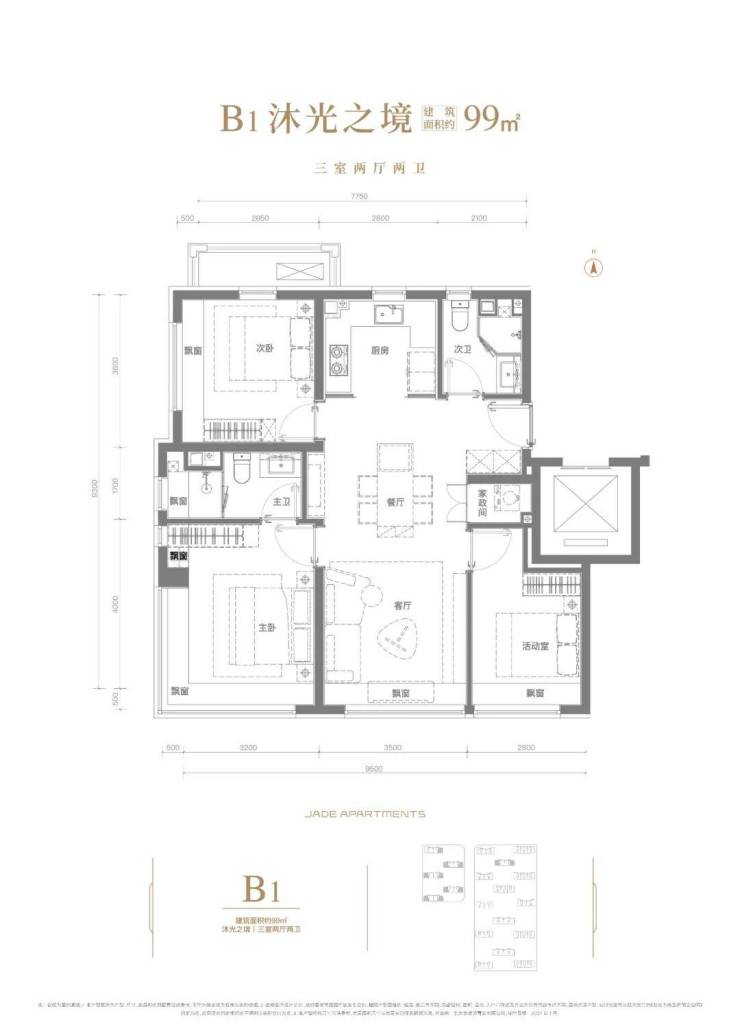 建面约99㎡三室两厅两卫,被誉为“北京最值得看的网红样板间”:客厅+2个房间朝南,阳光满溢;超大主卧套房,全屋飘窗+双向视野,超强观景体验;得房率高达约91%。居住功能全、空间体验好,网红户型,实至名归!