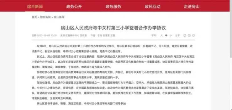 2023年12月,良乡大学城基础教育再次迎来利好:北京市重点小学中关村第三小学和房山区政府签订了合作办学协议,规划位置就在京熙润府西侧!